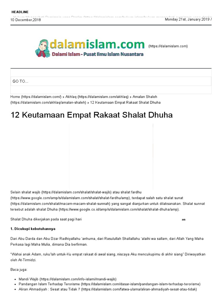 Salat Duha Bacaan Niat Jumlah Rakaat Dan Keutamaannya
