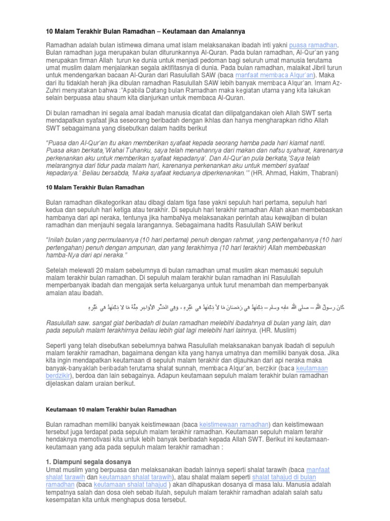 Muhammad farid wajdi palontaraqid bulan dzulhijah adalah salah satu bulan istimewa dalam islam khususnya pada 10 hari pertama bulan haji tersebut. Baca keistimewaan ramadhan dan keutamaan bulan ramadhan dibagi menjadi tiga fase yakni sepuluh hari pertama sepuluh hari kedua dan sepuluh hari ketiga. Keutamaan 10 hari pertama ramadhan inilah perbuatan yagn anjuran rasulullah saw tambah pahala puasa.